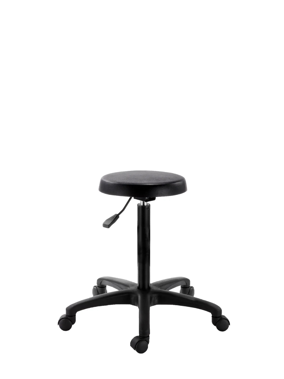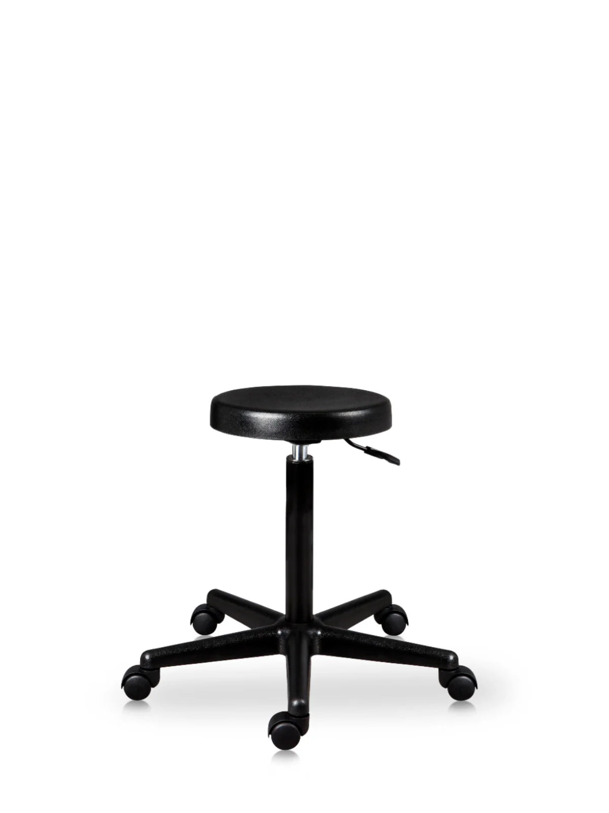 Banco Redondo negro versátil con altura regulable para cualquier estación de trabajo. Cuenta con 5 ruedas giratorias de 50mm que facilitan el desplazamiento sin esfuerzo, reposapiés circular para estabilidad superior y base pentagonal de nylon de 24". Su acolchado de poliuretano industrial suave sobre estructura de triplay garantiza durabilidad y confort prolongado. El mecanismo de pistón con palanca permite ajustes rápidos y seguros. Perfecto para oficinas, talleres y espacios profesionales que demandan funcionalidad y resistencia. Envío rápido y garantía de satisfacción. ¡Completa tu espacio hoy!