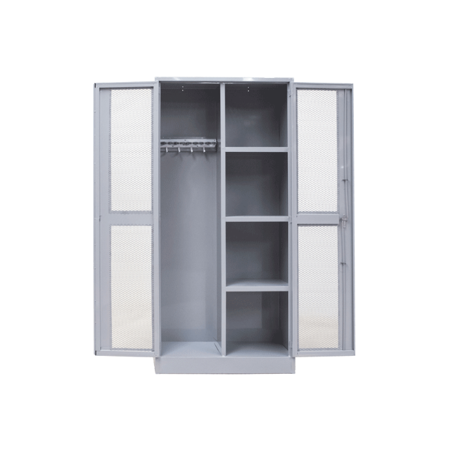 Gabinete Perforado fabricado en lámina negra calibre .24 con refuerzos estratégicos y uniones soldadas de alta precisión. Cada cordón y punto de soldadura es pulido mediante microalambre, ionisación y autógena para garantizar durabilidad y acabado profesional. Sometido a limpieza profunda por inmersión en desengrasante y desfofatizante para máxima resistencia a la corrosión. Estructura robusta de 40 kg, dimensiones 87 × 38 × 180 cm. Solución confiable para almacenamiento industrial y comercial.