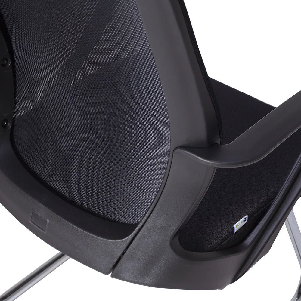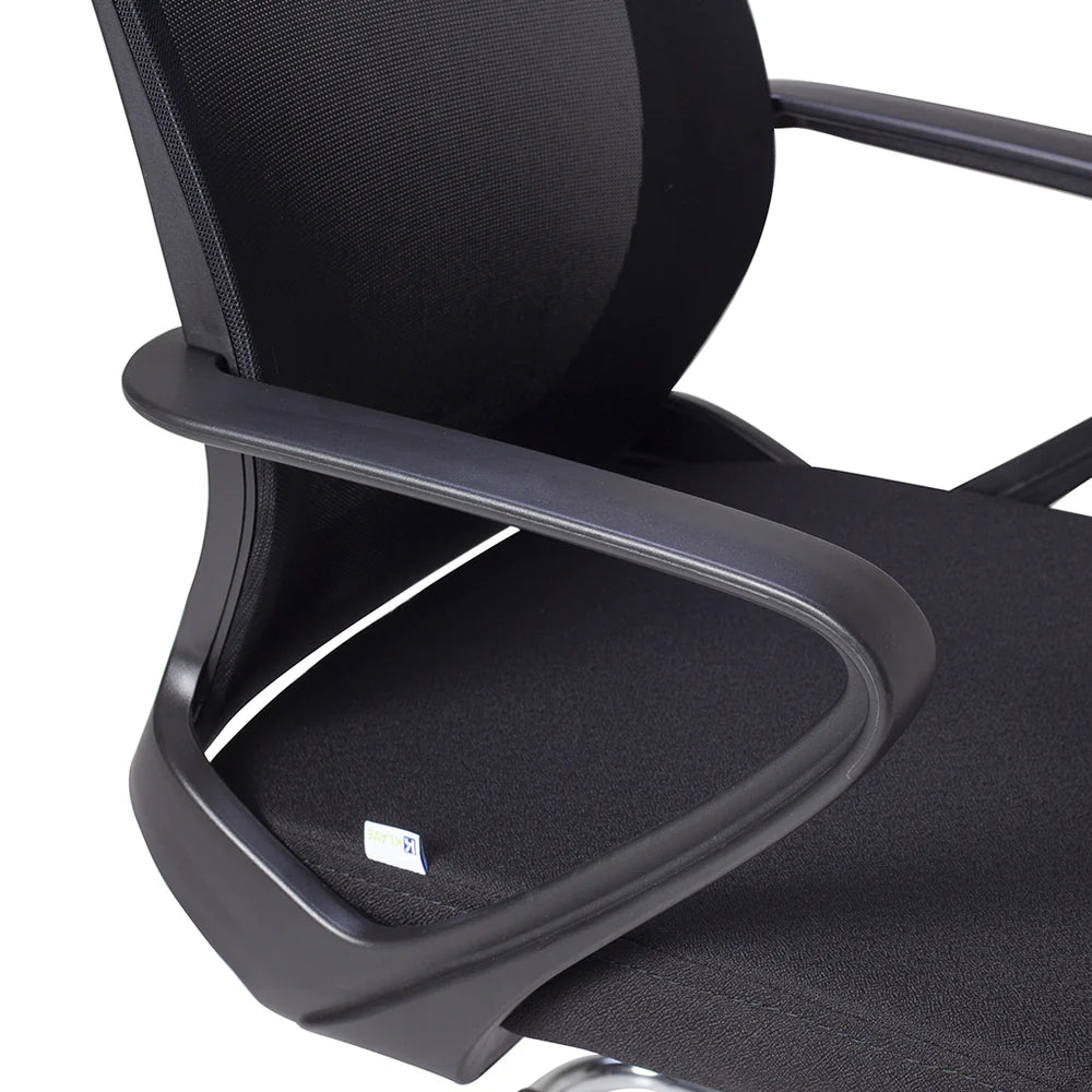 MATERIAL – Asiento acojinado de espuma inyectada de 30kg/m3 tapizable en todas nuestras telas de línea, respaldo en resistente malla color negro.