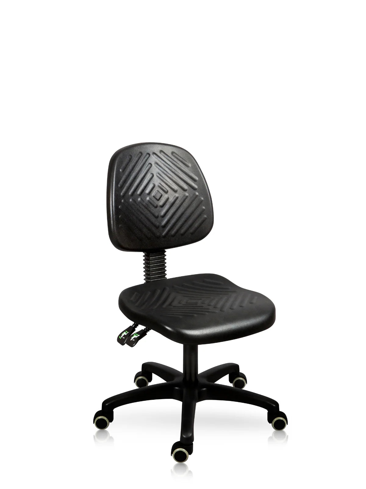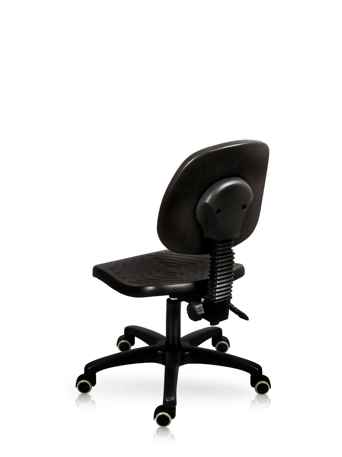 Silla Cajero en negro con construcción robusta pensada para ambientes comerciales exigentes. Respaldo y asiento cuentan con poliuretano industrial compacto sobre estructura de madera aglomerada de 10 mm, reforzados con tuercas insertadas para ensamble seguro y duradero. Mecanismo de dos palancas facilita el ajuste de altura según las necesidades del usuario. Base personalizable con múltiples opciones disponibles para complementar tu espacio de trabajo. Entrega ágil y respaldo de satisfacción garantizado.